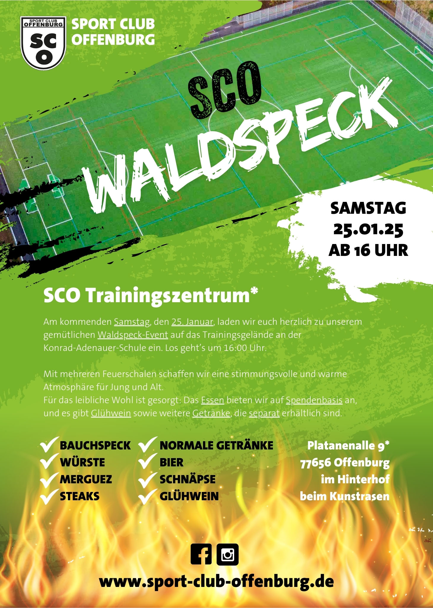 Am kommenden Samstag, den 25. Januar, laden wir euch herzlich zu unserem gemütlichen Waldspeck-Event auf das Trainingsgelände an der