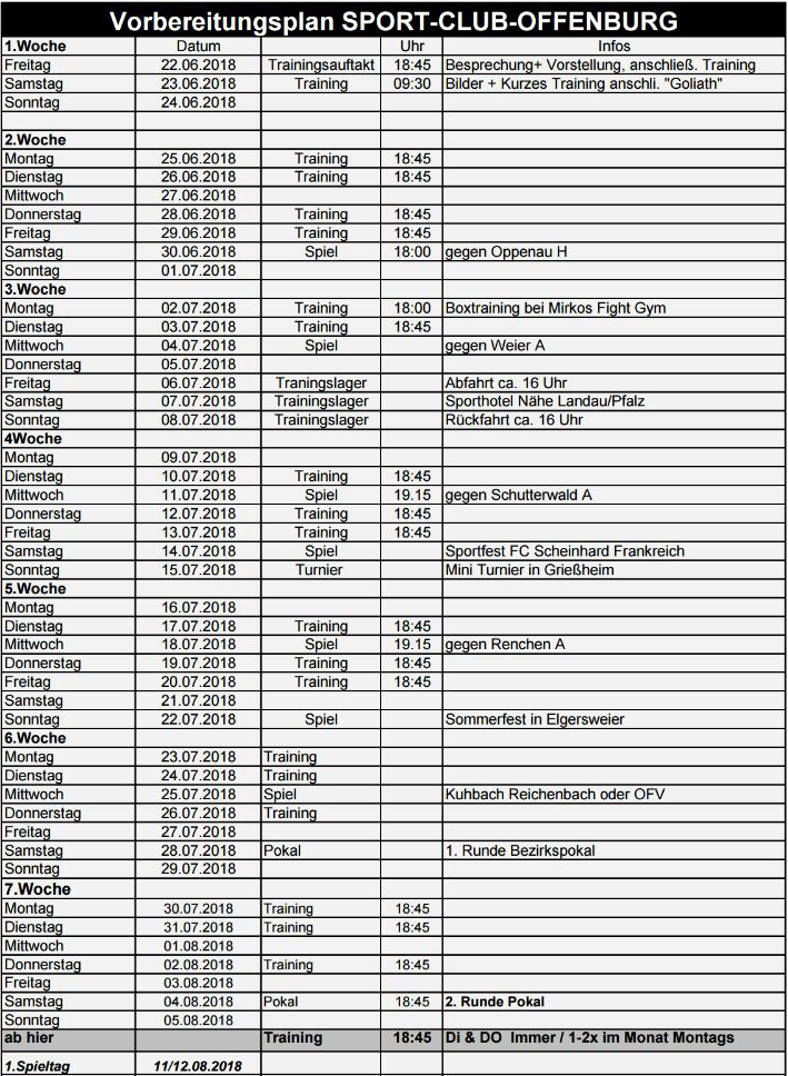 Vorbereitungsplan der Senioren des SC Offenburg